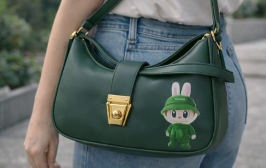 Designed for women who love refined simplicity, the Zwore Green Labubu Shoulder Bag with Gold Lock is a perfect blend of modern elegance and everyday practicality. Its clean structured shape, smooth green finish, and polished gold lock closure create a sophisticated look that instantly upgrades any outfit.